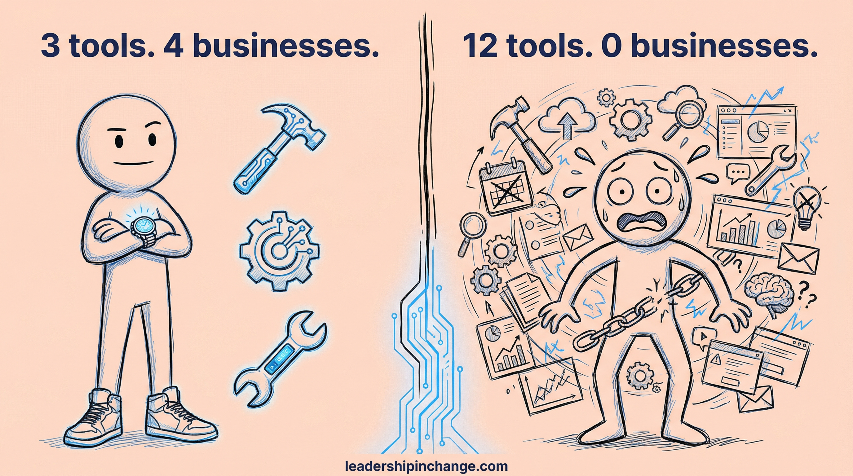 Two solopreneurs walk into 2026 with the same three AI tools. Same subscriptions, same access, same tutorials bookmarked. Six months later, one of them is running a smoother operation than they have ever had. The other is drowning in half-configured dashboards, abandoned automations, and a growing suspicion that AI is just expensive noise.