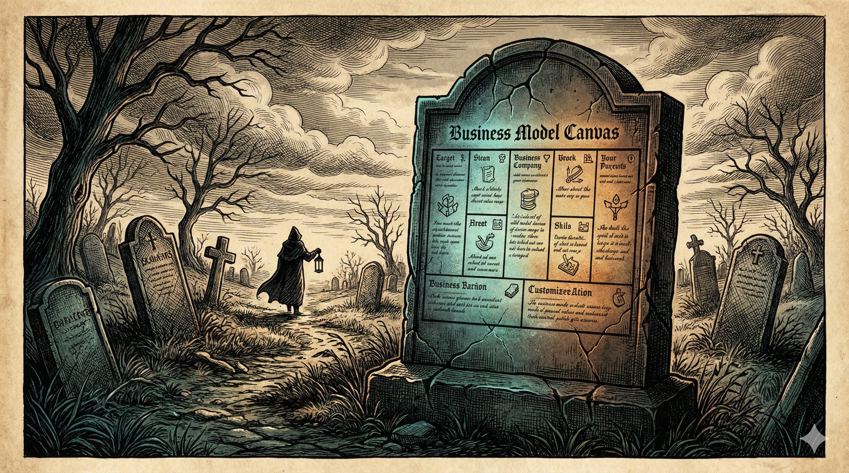 The Business Model Canvas and its nine hundred clones are on their way out. Not because they were bad ideas, but because the underlying benefits got disrupted.